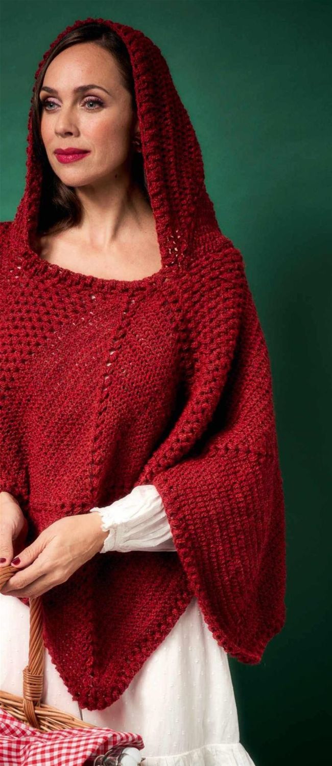With simple shapes and textured stitches, this hood is just the thing to take on your next journey. Just keep an eye out for rascally wolves!