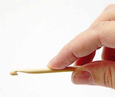PENCIL METHOD Hold the hook like a pencil, in your right hand (if you’re right-handed), about 3-5cm from the hooked end. If your hook has a flat area, you’ll find it comfortable to hold it here.