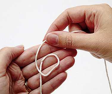 1 Hold the tail of the ball of yarn in your left hand and drape the yarn clockwise over the top of it to form a loose, circular loop.