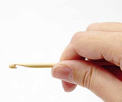 Hold the hook between your thumb and forefinger, about 3-5cm from the hooked end, resting the end of the hook against your palm. This will give you lots of control.