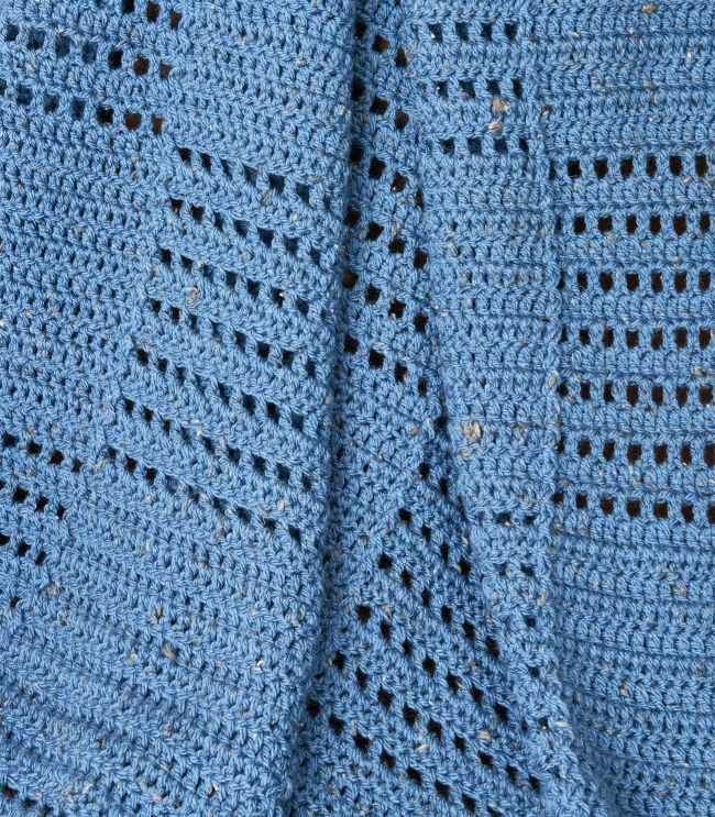Marjan Gouda’s snuggly yet breathable throw has alternating squares of solid and openweave fabric