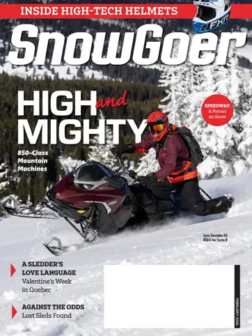 Fly high with a comparison of the 850-class mountain snowmobiles. Go far in Quebec for a five-day Valentine's escape, and learn the inside tricks (and responsibilities) of a snowmobile guide. Snowmobilers find past loves when they track down gone-but-not-forgotten sleds. Meet the Mille Lacs Drift Skippers of Isle, Minnesota, plan some February rides and learn what the Old Guys are up to now.