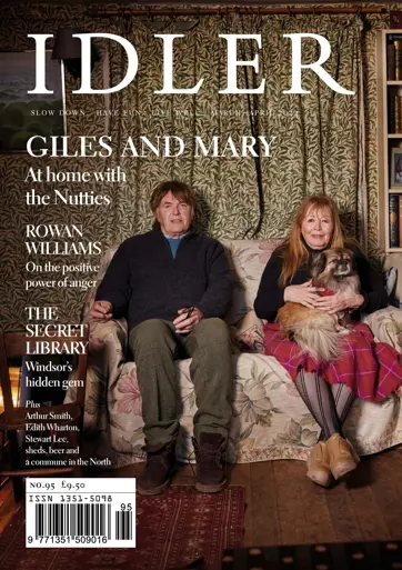 Idler 95 features a highly amusing chat with Giles and Mary from Gogglebox. Former Archbishop of Canterbury Rowan Williams dispenses wise words on the positive uses of anger. We visit a commune in the north, Arthur Smith offers his recipes for happiness, and Tim Richardson visits Colchester. Plus music tips from Stewart Lee and Georgia Mann.