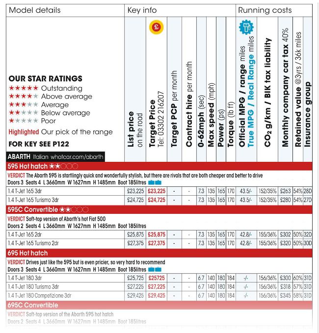 The Target PCP is a fair monthly fee if you’re taking out a personal contract purchase (PCP) finance deal, also set by our mystery shoppers. Most are over 48 months with a 15% deposit and an 8000-mile annual limit. Those marked with an asterisk are over 36 months and those with an apostrophe are over 42 months. Ford deals are over 9000 miles, while those for Honda, Mitsubishi, Mercedes, Skoda and Volkswagen are over 10,000 miles.