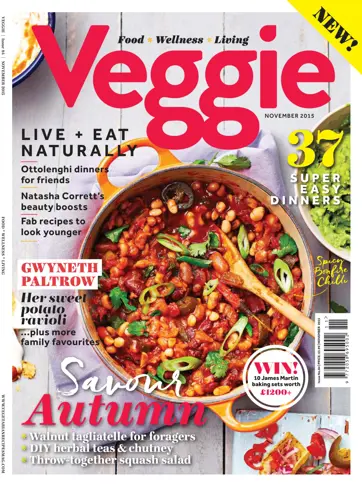 Cosy up with the new issue of Veggie magazine that's packed full of easy dinners and inspiring recipes. Yotam Ottolenghi serves up recipe-inspired grub while Gwyneth Paltrow keeps things more relaxed with her family favourites like Sweet Potato Ravioli. But if you only cook one this month, make it our cover star – the Best Ever Bean Chilli. Elsewhere, we showcase the gifts you can make in your own kitchen, Honestly Healthy's Natasha Corrett shows us what she keeps in her beauty bag and we show you how to make tastiest raw food snacks (cheesy kale crisps, anyone?). Plus, read about our favourite veggie haunts in Bristol and win one of ten James Martin baking sets!