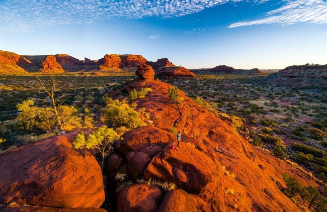 Hidden within a chiselled topography of rarely seen ranges and stark, flattopped monuments lies a verdant canyon oasis and its mysterious thicket of striking red cabbage palms. Far too tropical for this stark, red rock landscape, Palm Valley baffles the brightest scientific minds. But the setting — incongruous and utterly bewitching — is what coaxes travellers out of their comfort zones to throw down swags under the stars in Finke Gorge National Park.