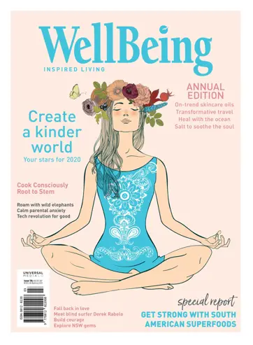 Create a kinder world with WellBeing #184. In our bumper Annual Edition, you’ll learn how to build courage, discover your star signs for 2020, calm parental anxiety and natural first-aid remedies for pets. Learn how to heal with the ocean, the many different ways salt can soothe your soul and how to create an insect-friendly garden. Explore the gems of inland New South Wales, roam with the wild elephants in Thailand and meet inspiring blind surfer, Derek Rabelo. In this issue, you’ll develop and maintain a self-care practice, learn how travel can help you to love and accept your body just the way it is and the importance of falling in love again. When it comes to food, we share all you need to create a healthy and wholesome life this year. Learn the many health benefits of South American superfoods, find out why cooking root-to-stem will help to save the world, discover krill oil and the powerful anti-inflammatory effects of pineapple. In this issue, learn how to pack a yogic mindset wherever you go, the low-down on skincare oils like acai berry, baobab and hemp sea oil and find out if the tech revolution is taking us in a good direction or not. If you’re ready to dive in and try something new this year, WellBeing #184 will guide you towards your transformation. Still hungry for more? Discover healthy supplements, healing foods, what’s happening in the wellness space and read our wonderful regular columns, plus much, much more!