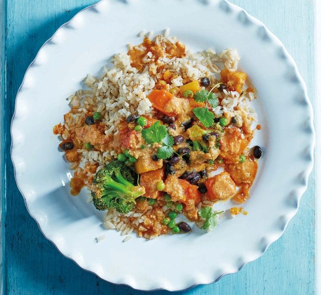 This protein-packed curry is delicious and really easy to make. Black beans are rich in protein as well as fibre and iron. Both the yogurt and almonds supply useful amounts of calcium. Make a larger quantity and keep the remaining portions in the fridge for up to three days, or freeze for up to three months.