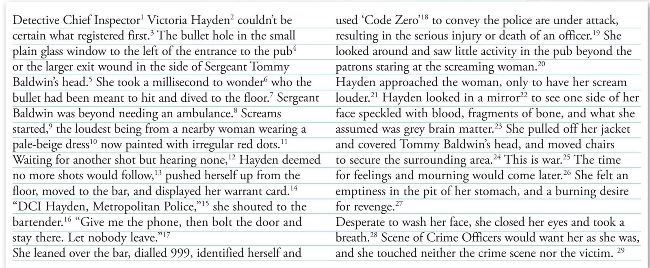 Another minor point: introducing characters with their full names is standard practice, but we need to think if this is useful for the reader. Do we need to remember both names, or will she be DCI Hayden for most of the book? Maybe she does need both names. It’s always a valid question.