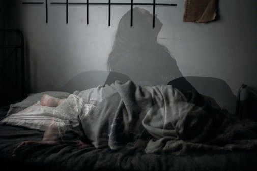 What thoughts go through the person’s mind, and how does their sleeplessness affect their mental process?